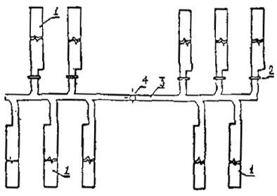 коллекторная выработка; 4 - ствол Рисунок