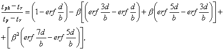 где tph - температура фазовых переходов воды в лед, °С; tr - естественная температура вечномерзлой породы, °С; tp - средняя за период заполнения температура продукта, °С; erfc - функция ошибок Гаусса, затабулирована и приводится в справочной литературе