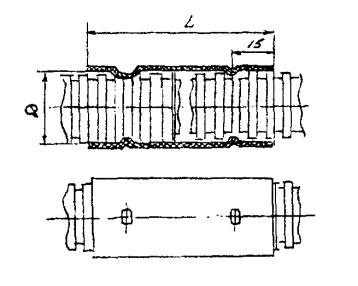 Рис. 2. Схема пластмассовой гофрированной трубы для электропроводок (ЭГТ) Таблица 2 Размеры раструбов (мм) для соединения труб из ПВХ (ТУ 6-19-215-83)