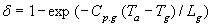 где Мg - масса выброшенного СУГ, кг; Сp.a - удельная теплоемкость воздуха, Дж/(кг·К); Lg - удельная теплота парообразования СУГ, Дж/кг; Ta - температура окружающего воздуха. К; Tg - температура кипения СУГ при атмосферном давлении. К; Хw - массовая доля водяных паров в воздухе; Lw - удельная теплота парообразования воды, Дж/кг. d определяют из соотношения