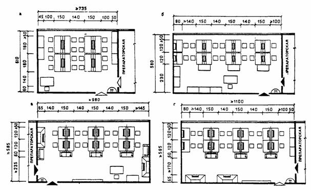 и аудитории (на 90 мест и менее) с плоским полом для изучения спецпредметов