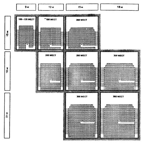 укрупненных расчетов общей площади в зависимости от вместимости и состава