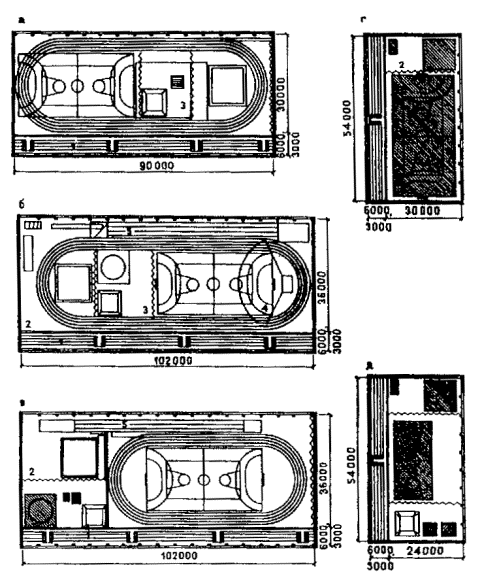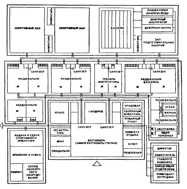 с вестибюлем, туалеты, душевые, курительные; радиоузлы,