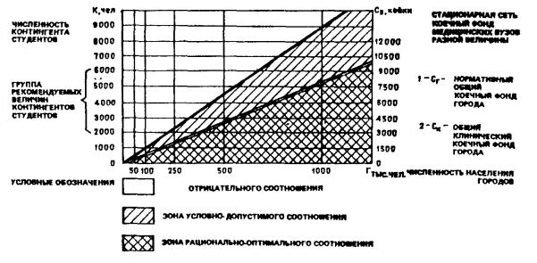студентов медицинских вузов в зависимости от величины коечного фонда больниц