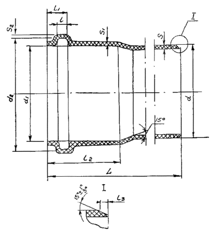 "фланец-раструб" (E-KS). Отрезок трубы с фланцевыми