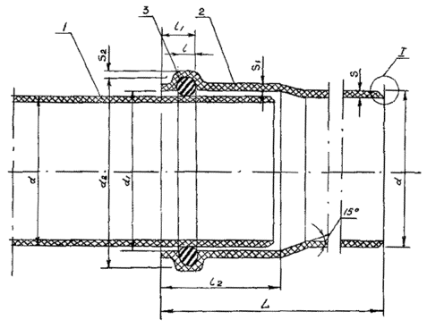 конец трубы; 2-раструб; 3-резиновое кольцо 2.8. Резиновые