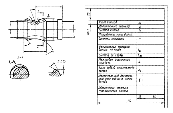 на чертеже червяка глобоидной передачи Черт. 1 Пример указания