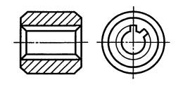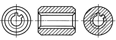 Изм. № 1). 1. УСЛОВНЫЕ ИЗОБРАЖЕНИЯ ЗУБЧАТЫХ ВАЛОВ, ОТВЕРСТИЙ И ИХ СОЕДИНЕНИЙ1.1. Окружности и образующие поверхностей выступов зубьев вала и отверстия показывают сплошными основными линиями (черт. 1 - 6). Черт. 5 Черт. 6 1.2. Окружности и образующие поверхностей впадин на изображениях зубчатого вала и отверстия показывают сплошными тонкими линиями (черт. 1 - 6), при этом сплошная тонкая линия поверхности впадин на проекции вала на плоскость, параллельную его оси, должна пересекать линию границы фаски (черт. 2, 3, 4). Образующие поверхностей впадин на продольных разрезах вала и отверстия показывают сплошными основными линиями (черт. 1, 5, 6). На проекции вала и отверстия на плоскость, перпендикулярную его оси, а также в поперечных разрезах и сечениях окружности впадин показывают сплошными тонкими линиями (черт. 5, 6). 1.3. Делительные окружности и образующие делительных поверхностей на изображениях деталей зубчатых соединений показывают штрихпунктирной тонкой линией (черт. 3). 1.4. Границу зубчатой поверхности вала, а также границу между зубьями полного профиля и сбегом показывают сплошной тонкой линией (черт. 1 - 4). 1.5. На изображениях, полученных проецированием на плоскость, перпендикулярную оси зубчатого вала и отверстия, изображают профиль одного зуба и двух впадин. Допускается изображать большое число зубьев и впадин. На этих изображениях фаски на конце зубчатого вала и в отверстии не показывают. 1.6. Если секущая плоскость проходит через ось зубчатого вала или отверстия, то на разрезах и сечениях валов зубья условно совмещают с плоскостью чертежа и показывают нерассеченными (черт. 1), а на разрезах и сечениях отверстий впадин условно совмещают с плоскостью чертежа (черт. 5, 6). 1.7. При изображении зубчатого вала или отверстия в разрезе или сечении линии штриховки проводят: в продольных разрезах и сечениях - до линий впадин; в поперечных разрезах и сечениях - до линий выступов (черт. 1, 5, 6). 1.8. Если секущая плоскость проходит через ось зубчатого соединения, то при его изображении на разрезе показывают только ту часть поверхности выступов отверстия, которая не закрыта валом (черт. 7). 19. Радиальный зазор между зубьями и впадинами вала отверстия не показывают (черт. 8). 2. ПРАВИЛА ВЫПОЛНЕНИЯ ЧЕРТЕЖЕЙ ЗУБЧАТЫХ ВАЛОВ И ОТВЕРСТИЙ2.1. Чертежи деталей зубчатых соединений должны быть выполнены в соответствии с требованиями стандартов Единой системы конструкторской документации и настоящего стандарта. 2.2. На изображениях зубчатых валов, полученных проецированием на плоскость, параллельную оси, указывают длину зубьев полного профиля l1 до сбега (см. черт. 1). Допускается дополнительно указывать полную длину зубьев l или наибольший радиус инструмента R, или длину сбега l2 (см. черт. 2 - 4). 2.3. На чертеже детали стандартизованного зубчатого соединения указывают в технических требованиях или на полке линии-выноски условное обозначение вала или отверстия по соответствующему стандарту. |