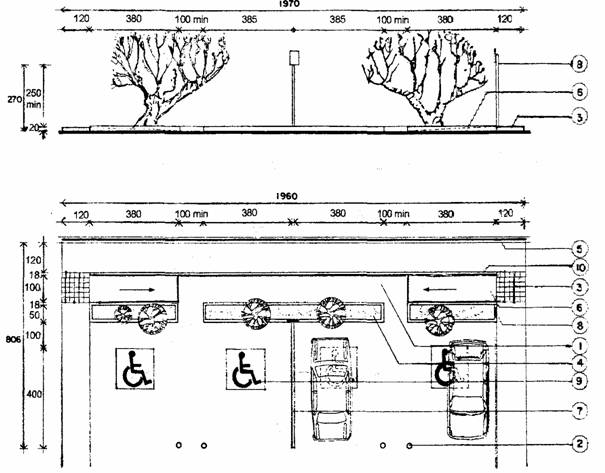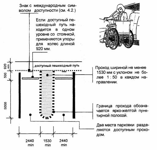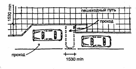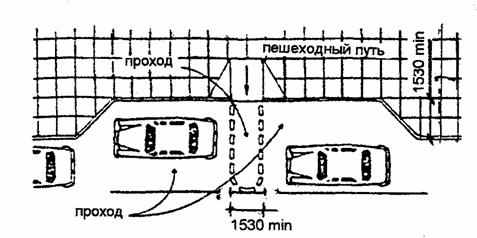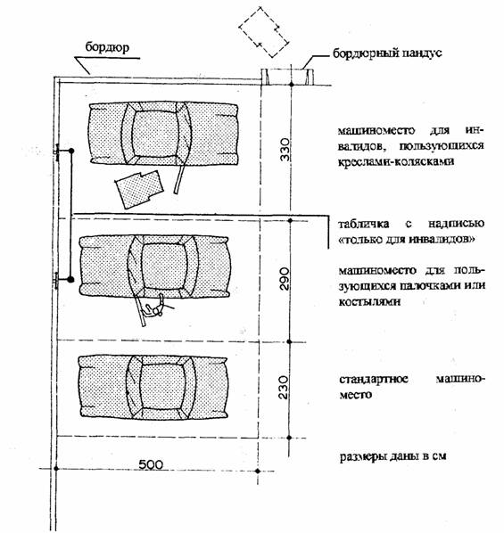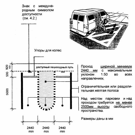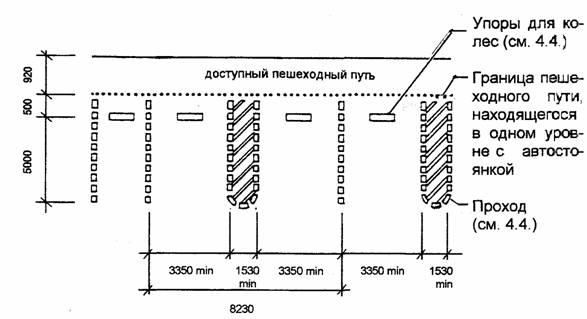 высадки (легковые автомобили, вэны, автобусы). Размеры даны в мм. 4.4. СТОЯНКИ ДЛЯ ЛЕГКОВЫХ АВТОМОБИЛЕЙ [3]