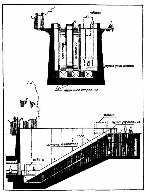 и продольный разрез кабины (см. 7.2.) 7.4. УСТРОЙСТВО ЛИФТА ПО УКЛОНУ