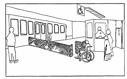закрепления кресла-коляски; для трамваев и электричек - устройство платформ и