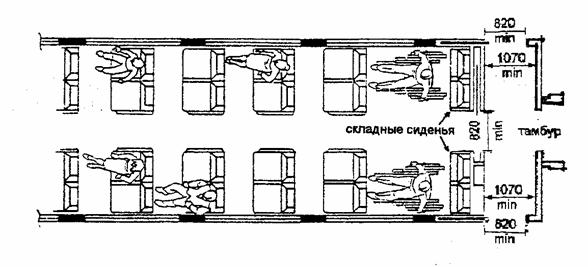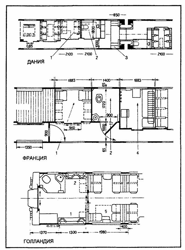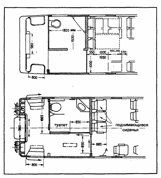 Вариант планировочного решения части вагона второго класса; приспособленной для инвалидов (немецкая железнодорожная колея). 8.5. ЗАРУБЕЖНЫЕ ПРИМЕРЫ