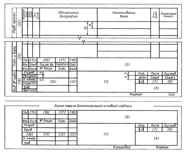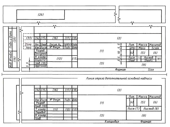 Примечание - Нумерация и расположение граф в дополнительной основной надписи соответствуют ГОСТ 2.104.