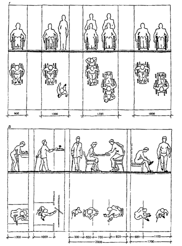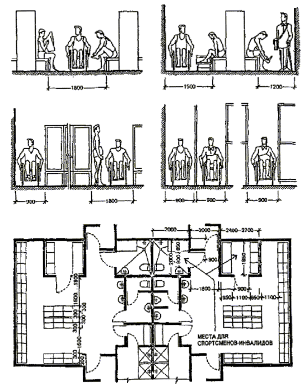 кресле-коляске, составляет 1500 мм, для разъезда двух колясок - 1800 мм (рис. 31). Рис. 31. Габариты коридоров в адаптируемых к посещению