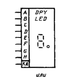 1. 7-сегментный люминесцентный индикатор с общим катодным (КА) или анодным (AN) выводом с изображением десятичной точки для индикации цифры
