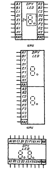 Примеры обозначений оптоэлектронных элементов индикации приведены в табл. 2.