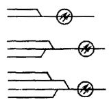 Допускается при наличии дополнительной информации указывать (n) над обозначением волновода без наклонной черты