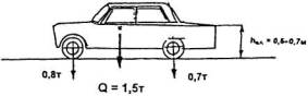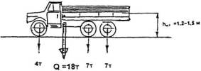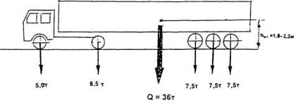 мостов на магистральных дорогах (рис. 1): · легковой автомобиль весом 1,5; · грузовой трехосный автомобиль весом 18 т; · автобус весом 15т; · грузовой автомобиль с полуприцепом