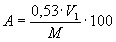 где 0,53 - количество Na2СО3, г, соответствующее количеству в мл точно 1,0 н. спиртового раствора соляной кислоты, идущего yа титрование 1 г антисептика (соответствует показателю «общая щелочность» антисептика АС-2, равному 10 %); М - навеска пряжи или бумаги, г. Содержание антисептика определяют как среднее
