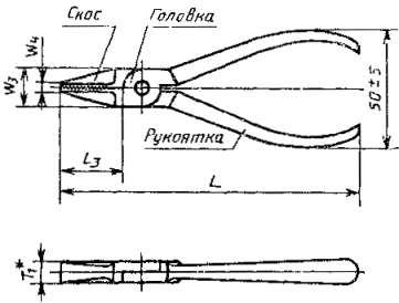 черт. 1 и в табл. 1. * Размер Т1 выдерживается на длине L3. Примечания. 1. Черт. 1 не определяет конструкцию. 2. Размеры плоскогубцев даны без учета изолирующих рукояток. Таблица 1 мм