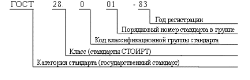 7. Структура комплексов стандартов СТОИР конкретных видов техники в общем случае должна соответствовать структуре комплекса стандартов СТОИРТ. 8. Обозначение стандартов СТОИРТ строится по классификационному признаку. Номер составляется: из двух цифр, присвоенных классу стандартов (28); одной цифры (после точки), обозначающей классификационную группу стандартов в соответствии с п. 6; двузначного числа, определяющего порядковый номер стандарта в данной группе, и двузначного числа (после тире), указывающего год регистрации стандарта. Пример обозначения стандарта «СТОИРТ. Основные положения»