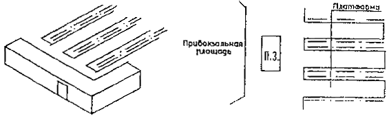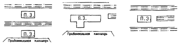 СП 41-101-95 Проектирование тепловых пунктов. ПУТЭКС Правила устройства и технической эксплуатации контактной сети электрифицированных железных дорог. ВНТП-91/МПС Ведомственные нормы технологического проектирования электросвязи на железнодорожном транспорте. I ПБ 105-95 Определение категорий помещений и зданий по взрывопожарной и пожарной опасности. ВНТП 05-97/МПС Определение категорий помещений и зданий предприятий и объектов железнодорожного транспорта по взрывопожарной и пожарной опасности. НПБ 110-96/МВД России Перечень здании, сооружении, помещении и оборудования, подлежащих защите автоматическими установками тушения и обнаружения пожара. РД 32.15-91 Нормы искусственного освещения объектов железнодорожного транспорта. РД 34.21.122-87 Инструкция по устройству молниезащиты зданий и сооружений. ЦЭ/4846 Инструкция по категорийности электроприемников нетяговых потребителей ж.д. транспорта. РД 78.142-90 Системы автоматические пожаротушения, пожарной, охранной и пожарно-охранной сигнализации. Нормы проектирования. РД 78.145-93 Системы и комплексы охранной, пожарной и охранно-пожарной сигнализации. Правила производства и приемки работ. ПУЭ Правила устройства электроустановок. Изд. 1986г. Правила устройства и безопасной эксплуатации трубопроводов пара и горячей воды. Утв. Госгортехнадзором России 01.11.94г. Правила учета тепловой энергии и теплоносителя. Утв. Минтопэнерго РФ 12.09.95г. Правила пользования газом в народном хозяйстве. Утв. Мингазпромом СССР 19.09.85г. Правила безопасности в газовом хозяйстве. Утв. Госпроматомнадзором СССР 26.12.90г. 3. ГЕНЕРАЛЬНЫЙ ПЛАН3.1. Земельный участок для строительства вокзала следует выбирать с учетом особенностей генерального плана населенного пункта и трассы железной дороги, с учетом удобных транспортных связей с основными районами населенного пункта. Привокзальную площадь следует размещать, как правило, со стороны основной части селитебной территории, предусматривая удобные технологические взаимосвязи привокзальной площади, пассажирского здания и платформ. Привокзальную площадь и размещение вокзала следует проектировать с учетом создания удобных подъездов, остановок и зон парковки местного транспорта, пешеходных подходов при возможно более полном разделении путей движения потоков транспорта и пешеходов. 3.2. При размещении значительной части жителей по другую сторону железной дороги, при соответствующем обосновании, допускается устройство второй привокзальной площади с противоположной стороны железнодорожных путей. При этом должны быть обеспечены удобные, безопасные переходы пассажиров через железнодорожные пути к основному зданию вокзалов и без излишнего дублирования помещений. 3.3. В зависимости от местных условий (рельеф местности, размеры и характер застройки, интенсивность потоков магистрального и местного транспорта и пассажиров, тип вокзала и др.) привокзальную площадь и движения на ней транспорта и пешеходов допускается проектировать водном или в нескольких уровнях, чтобы возможно более рационально использовать дорогостоящий земельный участок не только по горизонтали, но и по вертикали, чтобы создать лучшие условия для развязки потоков транспорта и пешеходов, их более удобные и короткие взаимосвязи. 3.4. В зависимости от расположения привокзальной площади относительно магистральных ул