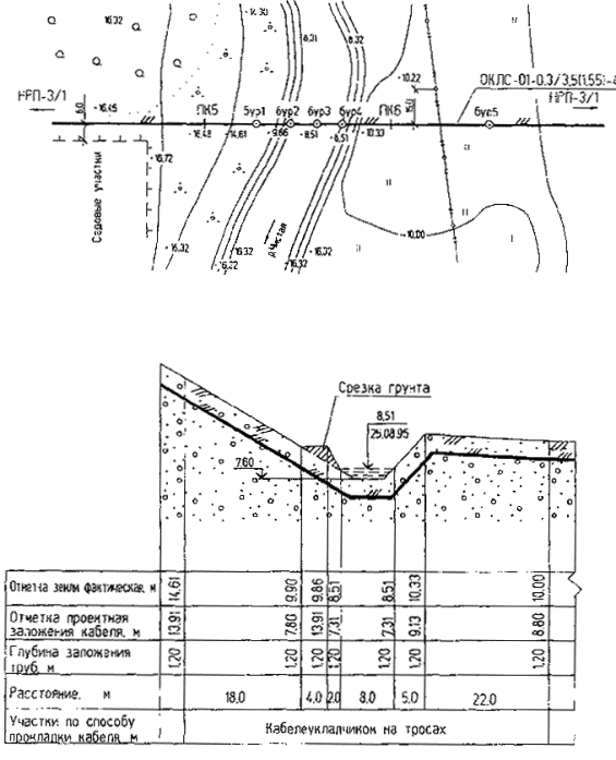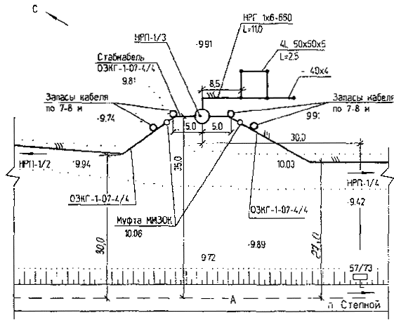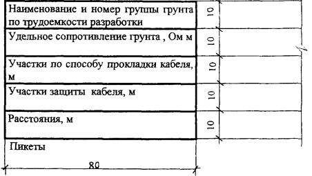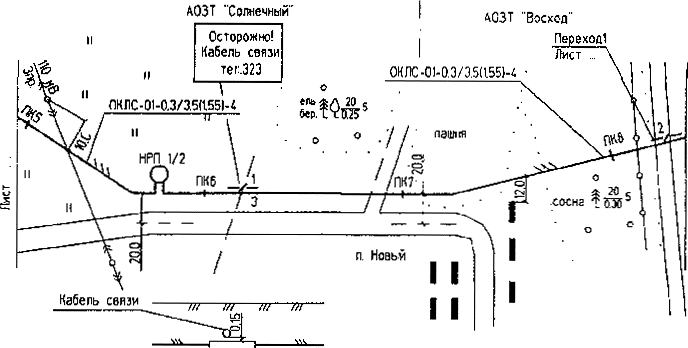 местных ориентиров и указанием пикетажа; - марки кабеля и троса; - пикеты; - наименования