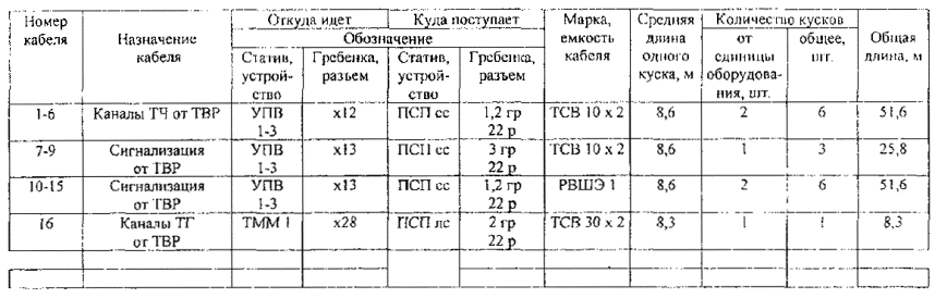 кабельной линии передачи приводят таблицу основных данных для прокладки кабеля