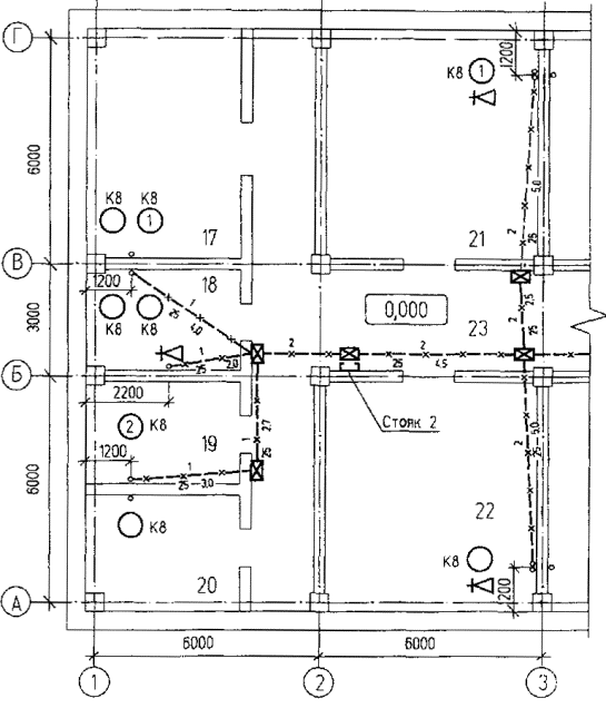 установить у выводов труб на высоте 0,15 м от ур. пола