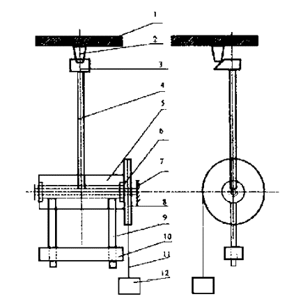 9 - стальные ручки; 10 - стальной противовес; 11 - нить; 12 -