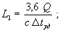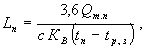 2,4; hп - высота установки воздухораспределителя. б) при душировании искусственно охлажденным воздухом (tприт = tохл) рабочих мест, подверженных облучению тепловым потоком: в) при душировании рабочих мест, подверженных загрязнению вредными веществами: где: Х - расстояние, м, от места выхода воздушной струи из воздухораспределителя до рабочего места; n - температурный коэффициент воздухораспределителя, по п. 43; tр,з, qр,з - соответственно температура, град. С, и концентрация вредных веществ, мг/куб. м, в воздухе на рабочем месте при неработающем воздушном душе; tн,с - нормируемая температура воздуха в струе на рабочем месте, град. С, по прил. 3 СНиП; tприт, qприт - соответственно температура, град. С, по прил. 3 к СНиП и концентрация вредных веществ, мг/куб. м, не более 0,3 ПДК в воздухе при выходе из воздухораспределителя. 47. Расход воздуха, L0, куб. м/ч, на воздушный душ следует определять по формулам (см. пример 6): б) при большем расстоянии: