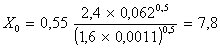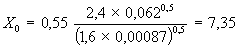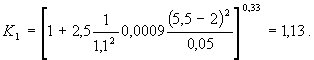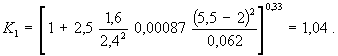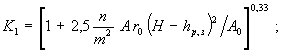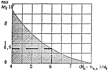 Значению Ar0 = 0,0009 на номограмме рис. 4 соответствует абсцисса (НП - hр,з)/d = 6, что при НП - hр,з = 5,5 - 2 = 3,5 определяет возможность применить воздухораспределитель расчетным диаметром d0 = 3,5/6 = 0,58 м, вместо принятого d0 = 1,13 × 0,05 = 0,25 м. Следовательно, расчетная схема развития конической струи соблюдается. По формуле (22) определяем коэффициент неизометричности