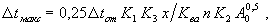 5. Число воздухораспределителей, размещаемых в помещении: N = Ап/Аз (20) где: Ап, Аз - площадь помещения и площадь зоны, обслуживаемая одним воздухораспределителем, кв. м. 39. Расчетная площадь воздухораспределителя, А0, кв. м, определяется по формуле: в дальнейшем заменяется расчетной площадью ближайшего из типовых воздухораспределителей. Здесь m - скоростной коэффициент воздухораспределителя, принимаемый по прил. 2; L1 = 0,000278 L0 - расход воздуха, куб. м/с, через каждый воздухораспределитель; L0 куб. м/ч - выбирается из рекомендуемых величин в прил. 2; К1, К2, К3 - соответственно коэффициенты неизотермичности, взаимодействия и стеснения струи; для осесимметричных и конических струй из плафонов: для веерных струй из плафонов и компактных и неполных веерных струй из решеток К = 1; К2 = 1 - для струй всех типов; К3 = 0,9 - для осесимметричных струй из плафонов; 0,8 - для конических струй из плафонов и компактных или неполных веерных из решеток; n - температурный коэффициент воздухораспределителя, принимаемый по прил. 2; Нр, hр,з - высота установки воздухораспределителя над полом и высота рабочей зоны, м; Аr0 - критерий Архимеда, определяемый по формуле (27); vx - скорость воздуха, м/с на оси струи в месте ее поступления в рабочую зону, связанная с нормируемой величиной vр,з, м/с, зависимостью vx = Кvр,з, где К - коэффициент, принимаемый в соответствии с прил. 6 к СНиП; в начале расчета величину коэффициента К принимают равной 1; затем уточняют; х - длина струи, определяемая по рис. 3. Типоразмер воздухораспределителя, А0, должен находиться в пределах, рекомендуемых значений расхода воздуха, указанных в прил. 2. 40. Максимальную рабочую разность температур приточного воздуха Dtмакс град. С, при которой отклонение температур по площади рабочей зоны не