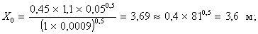Проверяем соблюдение расчетной схемы развития веерной струи (рис. 2е) по формуле (25); отрыв струи должен произойти на расстоянии: