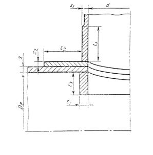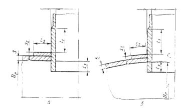 В случае отбортовки (черт. 7), а также при отсутствии торообразной вставки или вварного кольца
