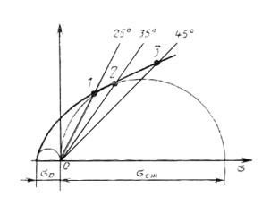 прочности горной породы является кривая, огибающая предельные круги напряжений