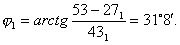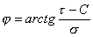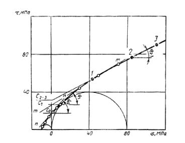 внутреннего трения 4.2. Условное сцепление в точке 1 с координатами (43 МПа; 53 МПа) (черт. 5). С1=27 МПа. Угол