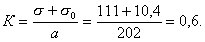 определяют граничное значение К обратным пересчетом по величине наибольшего