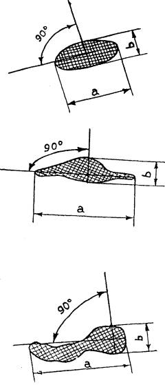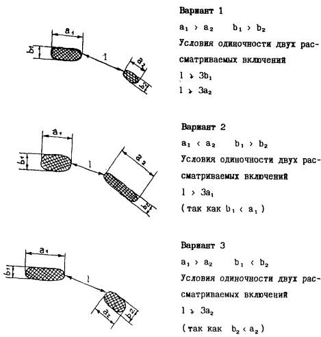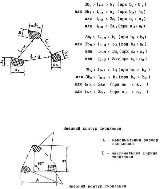 ТЕРМИНЫ И ОСНОВНЫЕ ПОНЯТИЯ1. Дефект - недопустимое отклонение от требований, установленных настоящим документом. 2. Трещина - дефект в виде разрыва металла сварного соединения. 4. Свищ - дефект в виде воронкообразного или трубчатого углубления в сварном шве. 8. Брызги металла - дефект в виде затвердевших капель металла на поверхности сваренных деталей. 14. Ширина шва - расстояние между краями поверхности сварного шва в одном поперечном сечении. 19. Включение - полость в металле шва, заполненная газом, шлаком или инородным металлом. 20. Пора - заполненная газом полость округлой формы в металле шва. 22. Включение - одиночное включение, минимальное расстояние от края которого до края любого другого соседнего включения не менее максимальной ширины каждого из рассматриваемых включений, но не менее трехкратного максимального размера включения с меньшим значением этого показателя (из двух рассматриваемых) (рис. П 1.1). 23. Максимальный размер одиночного включения - наибольшее расстояние между двумя точками внешнего контура включения (рис. П 1.2). 24. Максимальная ширина включения - наибольшее расстояние между двумя точками внешнего контура включения, измерено в направлении, перпендикулярном наибольшему размеру включения (рис. П 1.1). 25. Скопление - два или несколько включений с наибольшим размером более 0,2 мм, минимальное расстояние между краями которых меньше установленного п. 2.2 для одиночных включений, но не менее максимальной ширины каждого из двух рассматриваемых любых соседних включений (рис. П 1.3). При оценке расстояний между скоплениями включений скопление рассматривается как одиночное включение. 26. Внешний контур скопления - контур, ограниченный внешними краями включений, входящих в скопление, и касательными линиями, соединяющими указанные края (рис. П 1.3б). 27. Максимальный размер скопления - наибольшее расстояние между двумя точками внешнего контура скопления (рис. П 1.3б). 28. Максимальная ширина скопления - наибольшее расстояние между двумя точками внешнего контура скопления, измеренное в направлении, перпендикулярном максимальному размеру скопления (рис. П 1.3б). 29. Скопление считается одиночным, если минимальное расстояние от его внешнего контура до внешнего контура любого другого соседнего скопления или включения не менее трехкратной максимальной ширины каждого из двух рассматриваемых скоплений (или скопления и включения), но не менее трехкратного максимального размера скопления (включения) с меньшим значением этого показателя (из двух рассматриваемых) (рис. П 1.4). Рис. П 1.1. Одиночные включения Рис. П 1.2. Максимальные размеры а и ширина b включения Рис. П 1.3. Скопление Рис. П 1.4. Одиночные скопления Приложение 2(обязательное) МЕТОДИКА