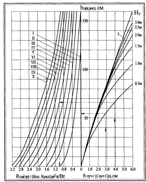 на карте, равном V, имеем Rод(тр)/(Код×Кувл)=0,98 м2К/Вт (см. рис. 3),