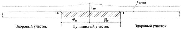 в местах сопряжения со здоровым участком дороги принимается равной lдоп =1,2 см. В соответствии с п. 1 допустимая величина пучения в средней