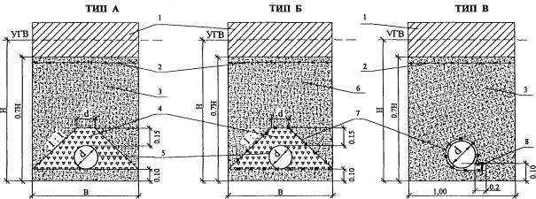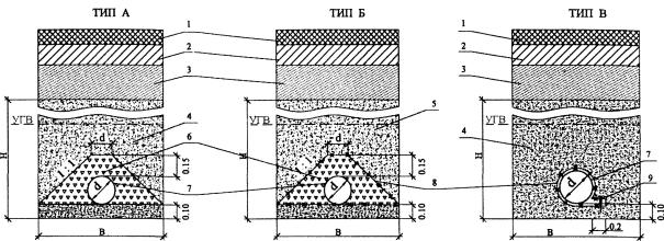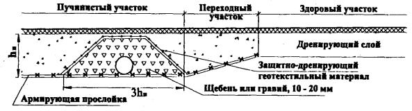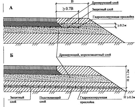 дренирующем слое вдоль дороги; - наличие пучинистых грунтов