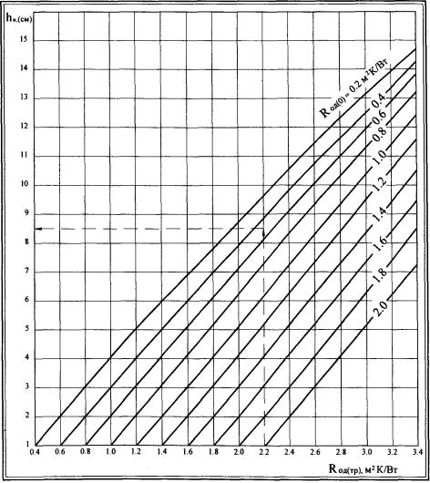 получаем по номограмме (рис. 8.1), что толщина теплоизолирующего слоя