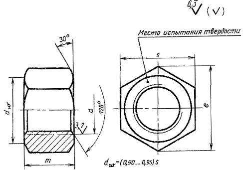 Примечания: 1. Гайки с размерами, заключенными в скобках, по возможности не применять. 2. Неуказанные предельные отклонения размеров: