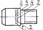 1 - товарный знак предприятия-изготовителя; 2 - марка стали: 3-условное давление; 4 - номер партии и порядковый номер детали в партии; 5 - условный проход; 6 - клеймо отдела технического контроля.