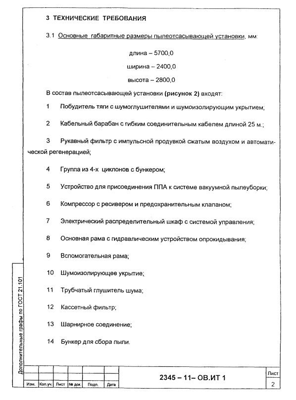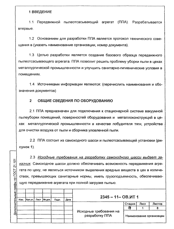 Пример выполнения исходных требований на разработку передвижного пылеотсасывающего агрегата.