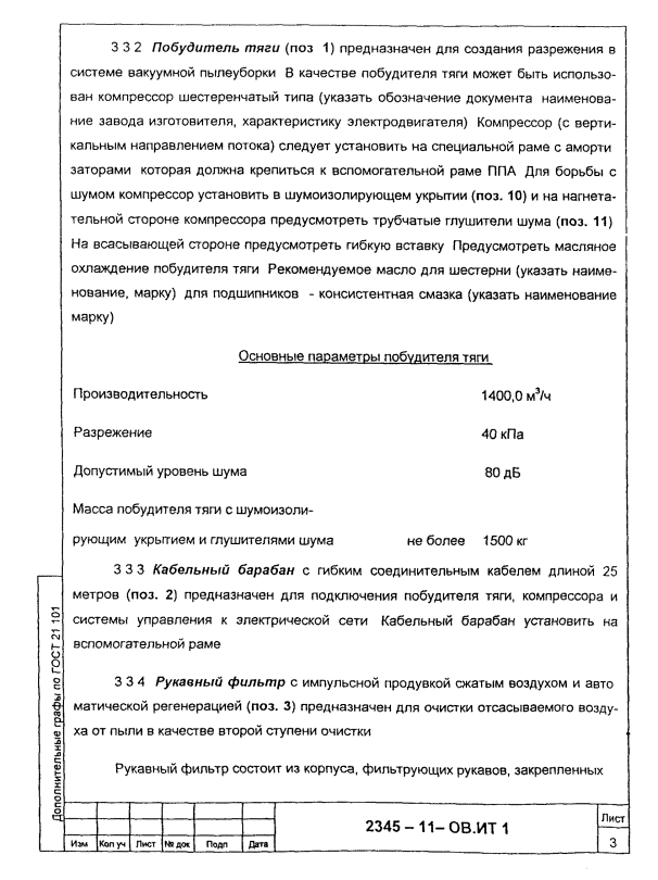 с их характеристикой; - данные по условиям присоединения к отсосу; - данные по объему газов, который должен отводиться от