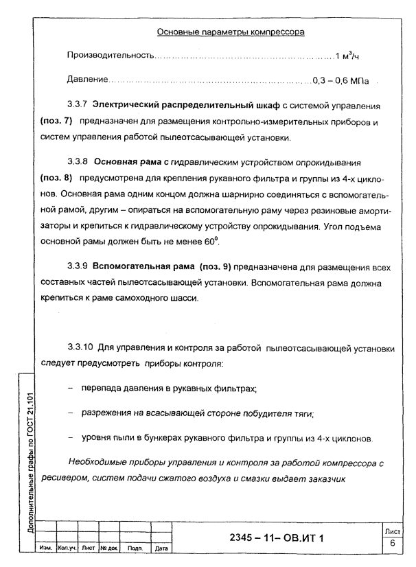 встроенного местного отсоса, требуемому разрежению на входе; - данные по составу вредных веществ, содержащихся в