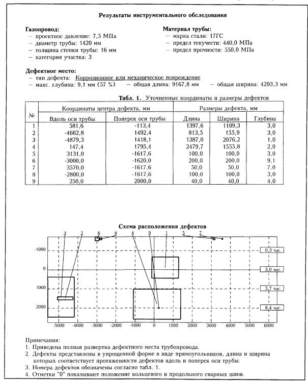 инструментального обследования дефектного участка трубопровода П2.2. В результате расчетов