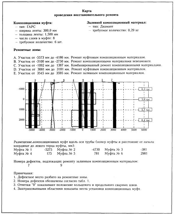 материалами и способ ремонта, количество и расположение композиционных муфт,